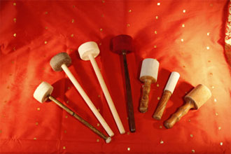 Große Auswahl an Filzschlägel in weicher, mittlerer und fester Ausführung (sowie Doppel-, Vollgummischlägel, Reibeklöppel mit Leder, Gongschlägel uvm).